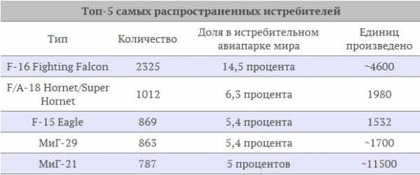 Ориентировочное количество выпущенных истребителей в разрезе стран (без переданных/полученных)
