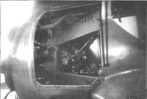 Далее требовалось закрыть замки убранного положения (при этом загорались лампочки желтого цвета), закрыть воздушный кран и выключить тумблер (желтые лампочки гасли). Довольно сложная и длительная процедура. .. К этому следует добавить, что тусклые красные сигнальные лампочки на приборной доске, загоравшиеся при убранных основных стойках, размещались весьма неудачно—их было плохо видно. Уборка колес занимала 9—10 с. На выпуск шасси под собственным весом уходило 19—20 с. Запаса воздуха в баллоне хватало на шесть-семь подъемов колес.