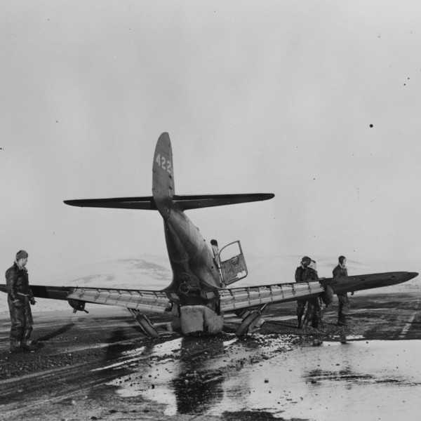 Р-39Q-10 с ПТБ ВВС СССР после аварийной посадки.