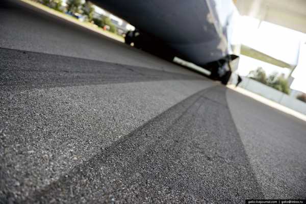 Большой вес самолета приводит к тому, что шасси оставляют следы на асфальте.