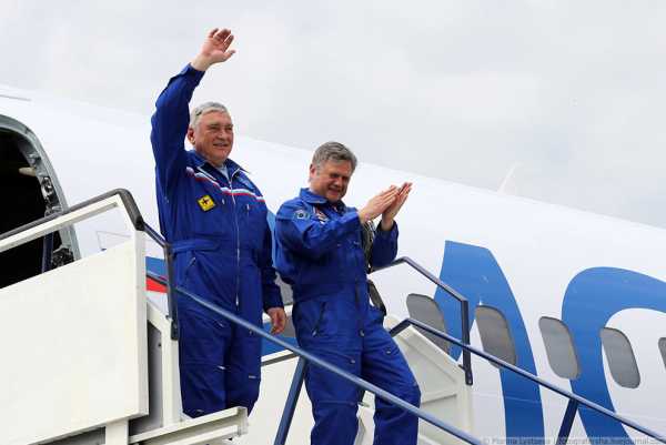 31. Дверь открылась, и под бурные аплодисменты летчики-испытатели выходят на трап. Самолет пилотировали летчики-испытатели, Герои России Олег Кононенко и Роман Таскаев.