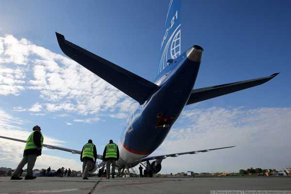 3. Самолет пробежался по полосе, в конце которой к нему подбежали техники и осмотрели шасси.