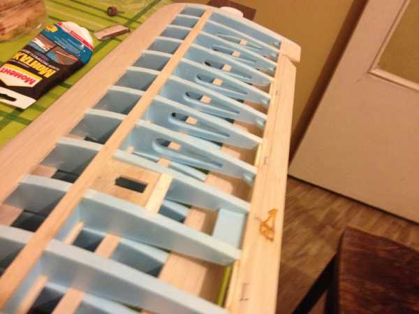 Так несколько раз, пока не собрал всю пачку (все 24шт,4 толстых блока по 5см и конечно запасные). Толстые 5 см нервюры я использовал как усиление в местах крепления крыльев, так и спицы плотно будут держать и резинка, для крепления крыльев к стойкам фюзеляжа, не будет продавливать крыло.
