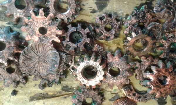 Потом красим шестеренки “медной” акриловой краской с помощью кусочка губки.