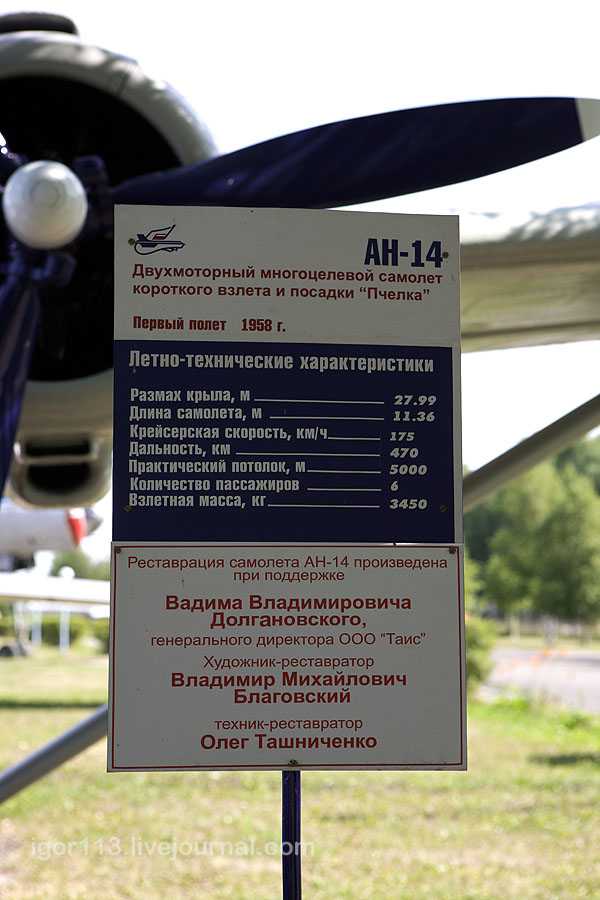 Переходим к Ан-14А СССР-48104 (003307) Зарегистрирован 8 января 1971 года. Эксплуатантом являлось МАП «Знамя Труда». Иногда упоминается, что поступил в музей истории гражданской авиации в 1983 году. Списан 20 июля 1984 года. С логотипом Аэрофлот поступил в музей истории гражданской авиации. В августе 2008 года заново окрашен и отреставрирован.