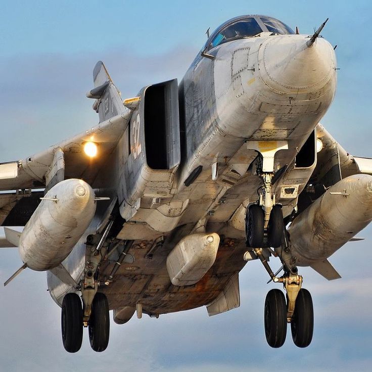 Су-24 — советский и российский фронтовой бомбардировщик с крылом изменяемой стреловидности.