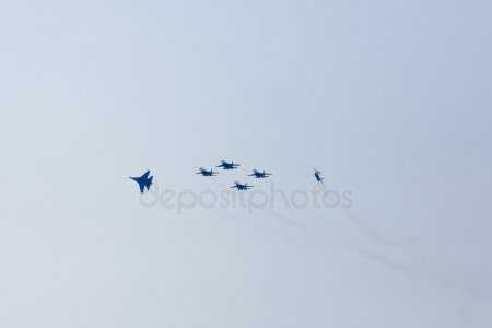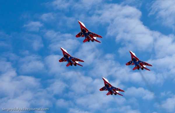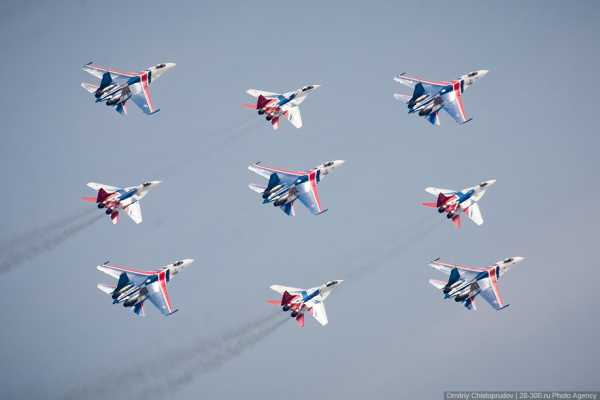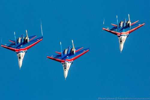 Кульминацией программы полетов была уже хорошо известная фигура «Ромб» в составе пяти «Витязей » и четырех «Стрижей».