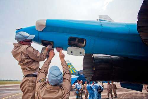 Перед исполнительным полётом техники осматривают самолёты ещё раз.