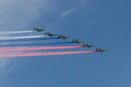 Они с легкостью демонстрируют такие элементы как петля Нестерова в составе ромба из четырех и девяти самолетов, роспуск «тюлпан», «колокол», групповая «бочка» и многие другие.