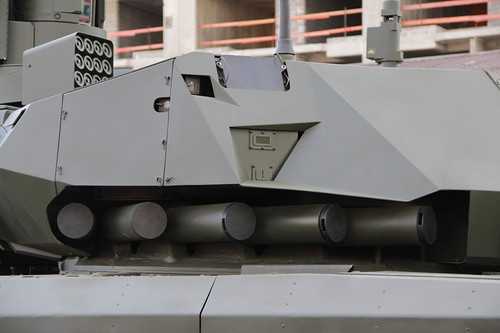Он отлично защищен — модульная броня может быть оперативно заменена. Особое внимание уделено и маскировке — чтобы танк был не заметен на поле боя, конструкторы изменили оттенок выхлопных газов. Защитная система способна информировать об угрозах и обезвреживать ракеты.