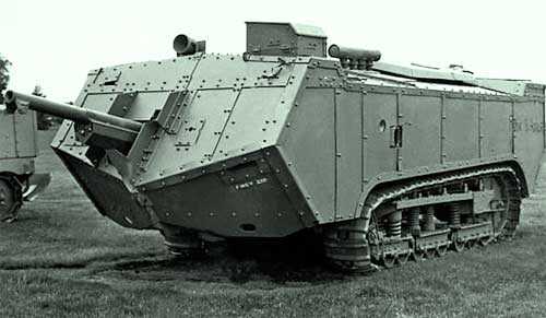 Все тот же трактор Холт 75 1909 года рождения, только выпускаемый по лицензии фирмой Бест, поэтому называется Best 75 Tracklayer. И тут определение трэклэера трактуется не иначе как гусеничный ход. Вот Бест и сотворили собственную конструкцию, как они ее видели. Громоздкий корпус с размещенными макетами вооружения где-то в районе рулевого колеса и надстройкой на корме. Модель получилась нежизнеспособная, и военные, снова поцокав языками, вежливо отказались. Ну нельзя из трактора сделать хороший танк.