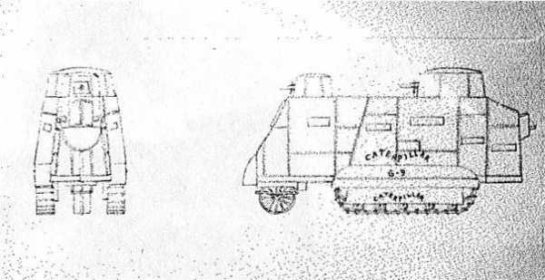 Известная американская контора Студебеккер, которая уже в первую мировую специализировалась на выпуске грузовиков, предложила и свой вариант бронированной машины. Этот «танк» изначально планировался исключительно как бронированный грузовоз, но получилось нечто похожее на британские ромбические Марки, только ниже и длиннее. Вполне естественно эту платформу попытались проработать и как танковую, но ничего путного из обоих вариантов не вышло. Гусеничный бронированный Студебеккер так и остался в единственном опытном экземпляре.