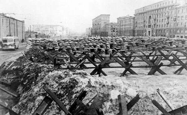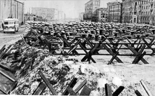 Баррикады на Можайском шоссе в Москве, подготовленном для уличных боев в октябре 1941 годаИсточник — plan-barbarossa.ru