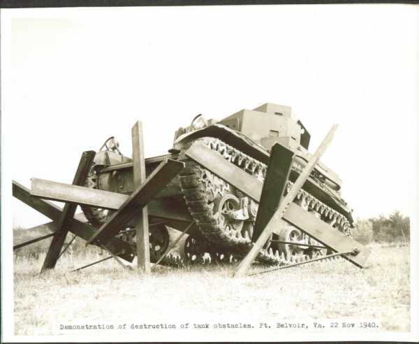 Танк вынужден остановиться, так как клык [заграждения] попал между гусеницей и ведущим колесом гусеничного хода, а клык звездочки 3-й линии заграждения, упершись в днище носовой части танка, приподнял последний на воздух. Данное положение без помощи извне не дает возможности продолжать движение. Остановка же танка на заграждении является наиболее эффективным явлением для расстрела его артиллерией по заранее пристрелянным участкам установленного заграждения.
