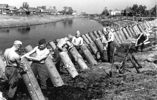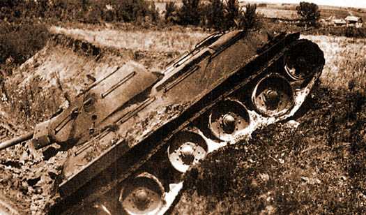 Установка противотанковых «ежей» по Брест-Литовскому проспекту Киева возле завода «Большевик», июль 1941 года. Центральный государственный кинофотофоноархив Украины им. Г.С. Пшеничного3 июля 1941 года на Сырецком танковом полигоне были проведены испытания новых противотанковых средств. Использовались два танка КТТУ: один Т-26 и один БТ-5. Вот описание повреждений танков из акта испытаний: «Легкий танк Т-26 при первом заезде на препятствие был выведен из строя – сорван люк масляного насоса и повреждены маслоподводящие трубки, в результате чего масло из мотора вытекло через 3-5 минут, что привело к вынужденной остановке машины. Танк БТ-5 за счет большого запаса динамического усилия первоначальную расстановку препятствий преодолевал, имея в результате этого дефект в виде помятости днища танка, что отразилось на его управлении и работе бортовых фрикционов, и танк потребовал двухчасовой ремонт».