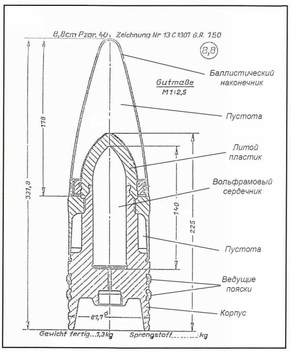 Тип снаряда – Бронебойный тупоголовый с баллистическим наконечником;