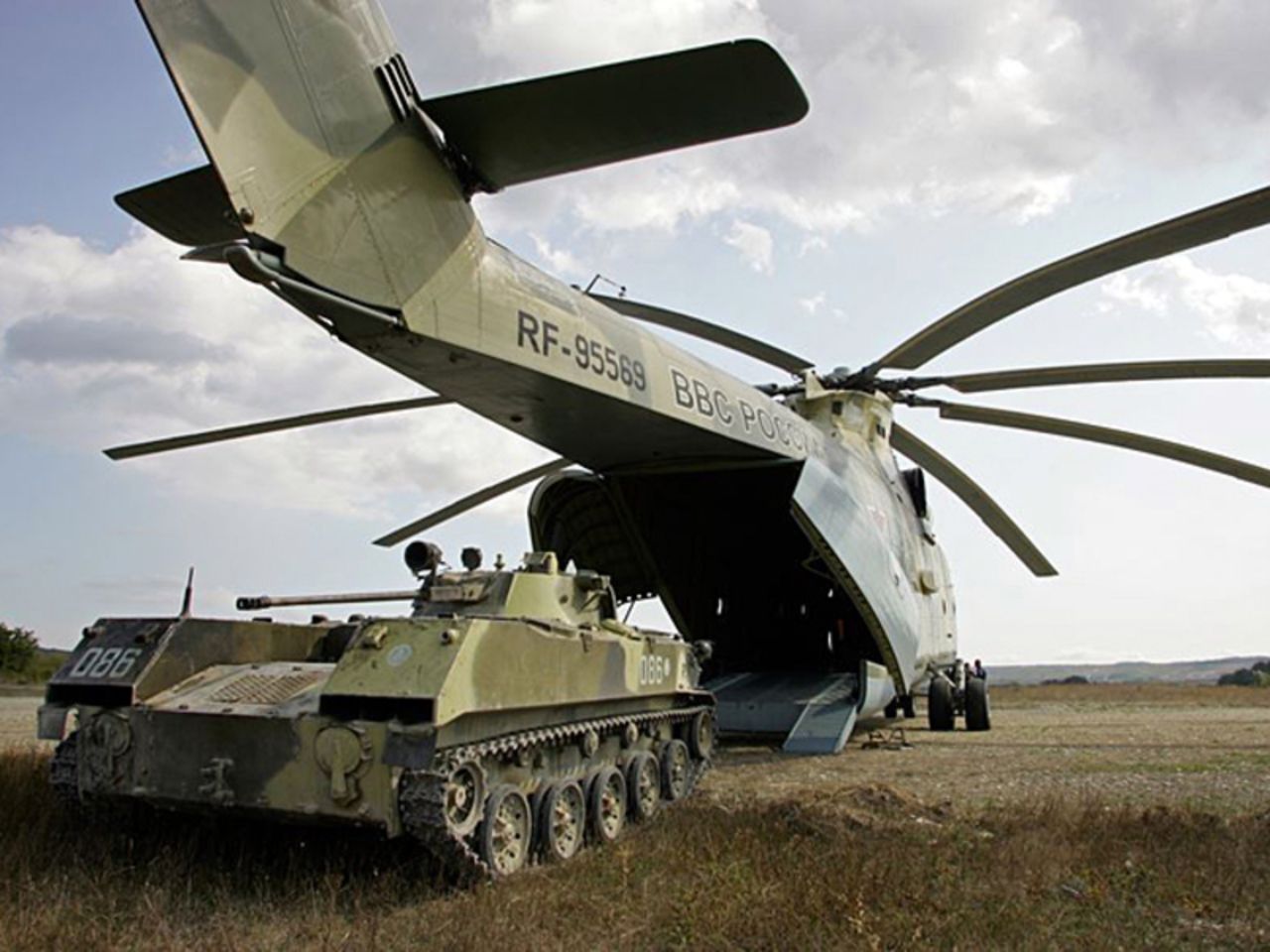 , Минобороны России Наконец, Ми-26 является самым тяжелым в мире боевым вертолетом и обеспечивает ВКС уникальной вертикальной грузоподъемностью, способностью перевозить большие грузы, такие как 82 человека, 68 полностью экипированных десантников или различные военные машины, которые можно вывести прямо из трюма через заднюю погрузочную рампу.
